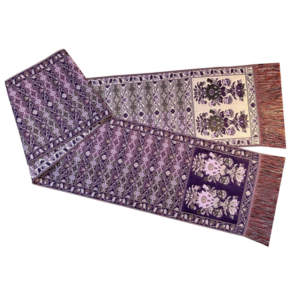 Bieżnik na stół utkany we wzór historycznego pasa kontuszowego. To jest tkanina dwustronna.