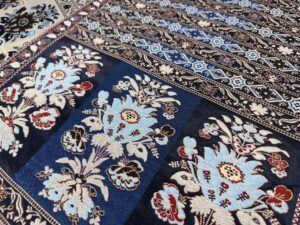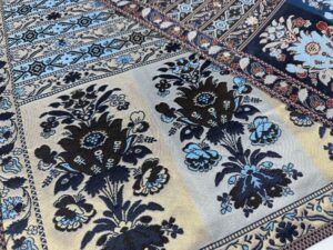 Jest rok 1520. W porwanej z Polski młodziutkiej Aleksandrze Lisowskiej zakochuje się na umór potężny monarcha – Sulejman Wspaniały. Śliczna dziewczyna otrzymuje jako prezent zaręczynowy olbrzymi, szafir o wadze sześciuset karatów. Rudowłosa niebieskooka piękność nie rozstaje się z oprawnym w złoto kamieniem o kolorze nieba w bezwietrzne południe. Nasza tkanina to ukłon w stronę kolorów które przynosiły szczęście wielkiej Królowej. Prócz granatu i złota jest tam kolor jej włosów i błękit jej oczu.