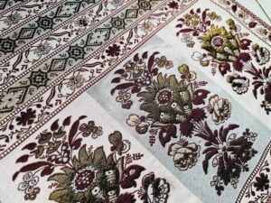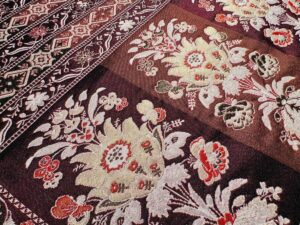 Bieżnik na stół utkany we wzór historycznego pasa kontuszowego. To jest tkanina dwustronna.