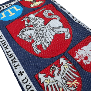 Z drugiej strony widać herb Wielkiego Księstwa Litewskiego oraz herby sojuszników unii polsko-litewskiej na przełomie XIV i XV wieku.