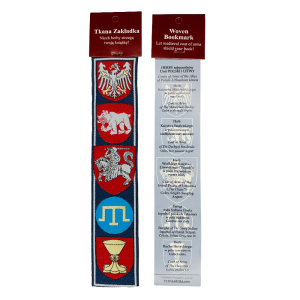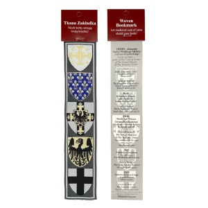 Z drugiej strony widać herby sojuszników Zakonu Krzyżackiego