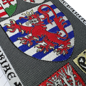 (od środka u góry i na prawo): DUCATUS LUXEMBURG, DUC. POMERANIÆ, DUCATUS OLSNENSIS, REGNUM BOHEMIÆ, REGNUM HUNGARIÆ