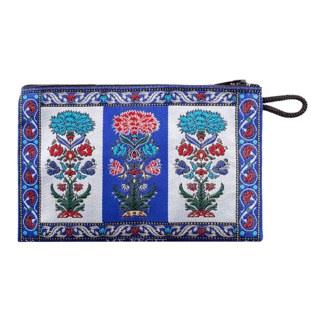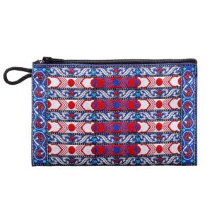 Pugilares posiada tkany, historyczny ornament powtarzający wzór spotykany w głowach pasów kontuszowych i ma rozmiar 10 cm na 14cm (zamyka się na zamek błyskawiczny).