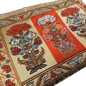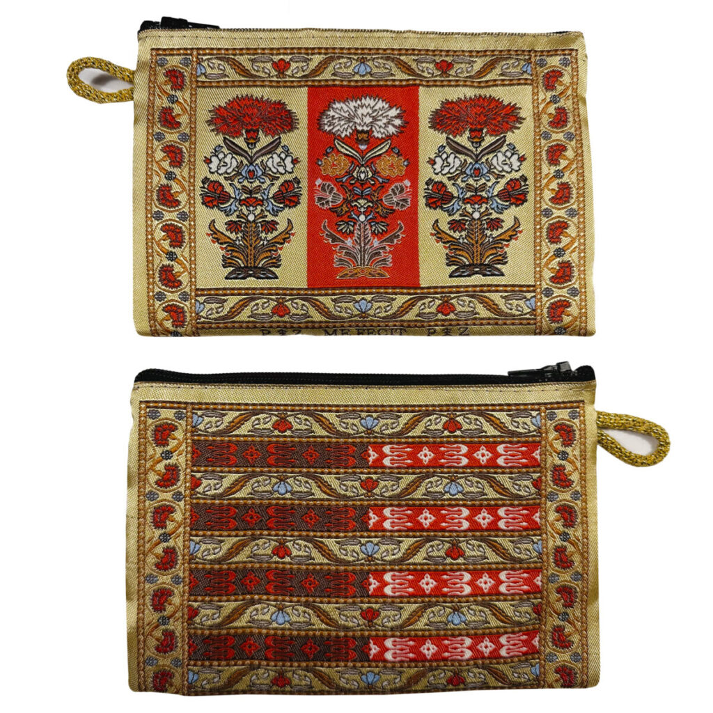 Pugilares posiada tkany, historyczny ornament powtarzający wzór spotykany w głowach pasów kontuszowych i ma rozmiar 10 cm na 14cm (zamyka się na zamek błyskawiczny).