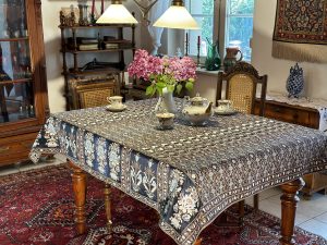 Jest rok 1520. W porwanej z Polski młodziutkiej Aleksandrze Lisowskiej zakochuje się na umór potężny monarcha – Sulejman Wspaniały. Śliczna dziewczyna otrzymuje jako prezent zaręczynowy olbrzymi, szafir o wadze sześciuset karatów. Rudowłosa niebieskooka piękność nie rozstaje się z oprawnym w złoto kamieniem o kolorze nieba w bezwietrzne południe. Nasza tkanina to ukłon w stronę kolorów które przynosiły szczęście wielkiej Królowej. Prócz granatu i złota jest tam kolor jej włosów i błękit jej oczu.
