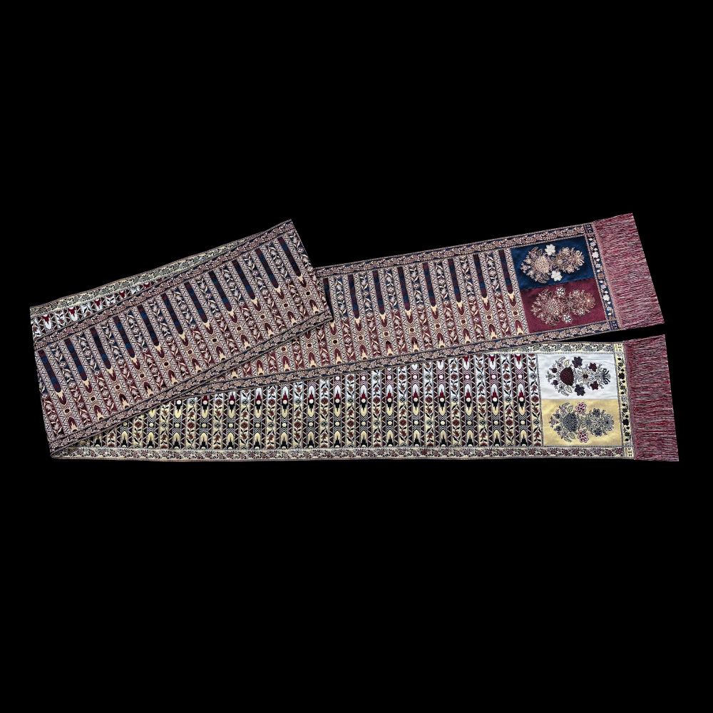 Długość razem z frędzlami 450 cm, szerokość 28 cm.