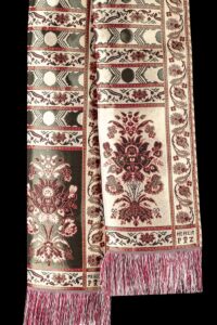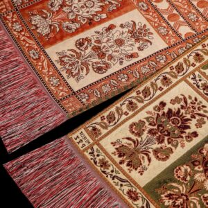 Długość razem z frędzlami 430 cm, szerokość 30 cm.