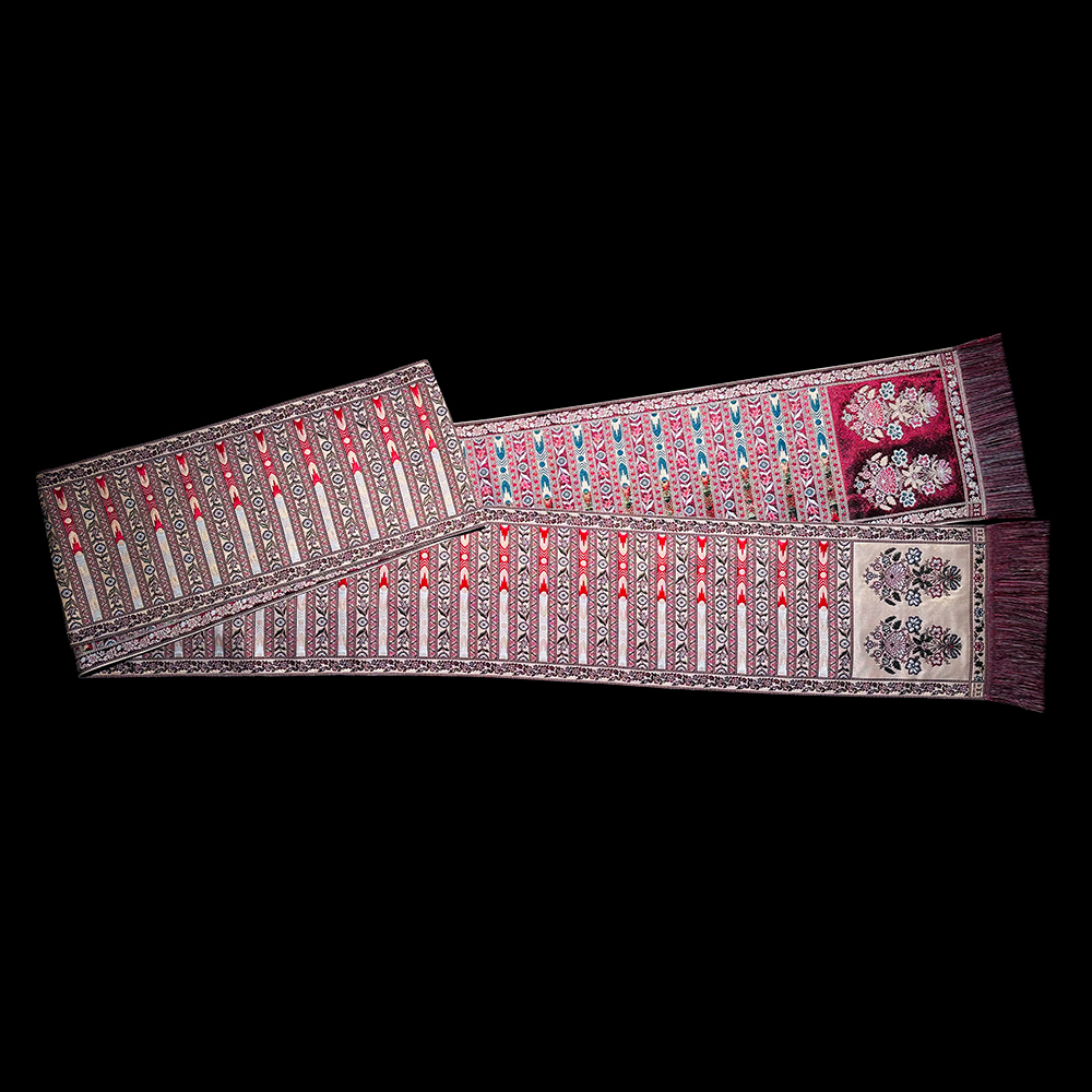 Długość razem z frędzlami 450 cm, szerokość 28 cm.