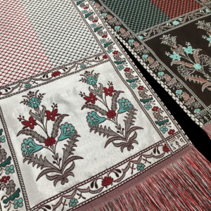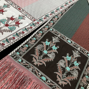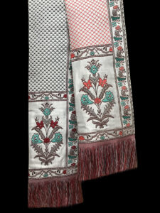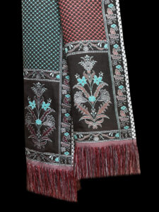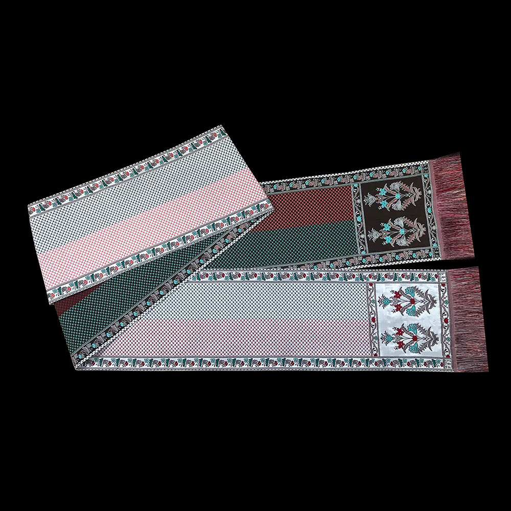 Długość razem z frędzlami 410 cm, szerokość 30 cm.