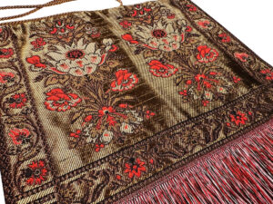Wymiary: szerokość 28cm, wysokość bez frędzli 22cm.