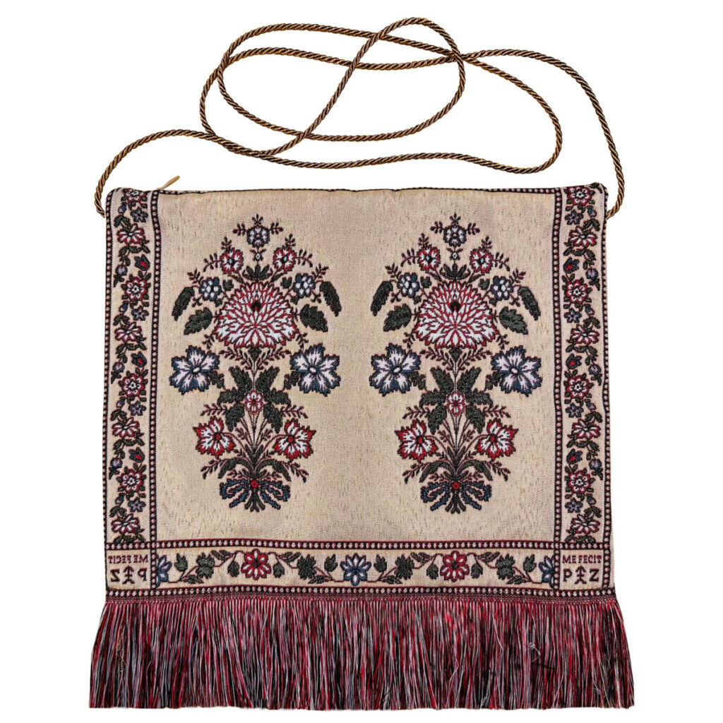 Wymiary: szerokość 28cm, wysokość bez frędzli 22cm.