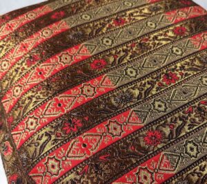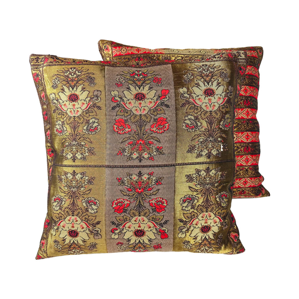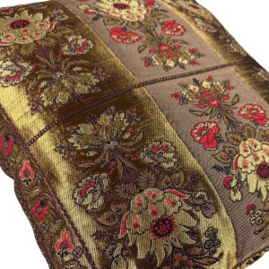 Nasze poduszki (45cm x 45cm) szyjemy z materiału tkanego we wzory dawnych pasów kontuszowych z XVIII wieku.