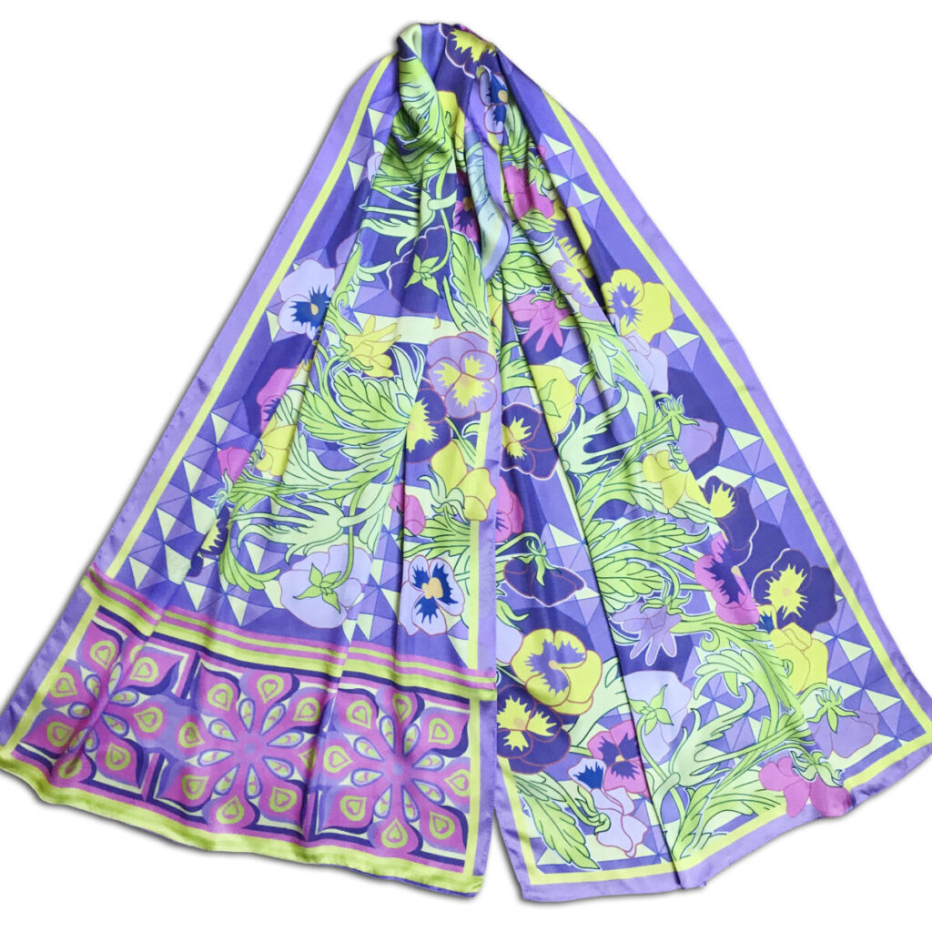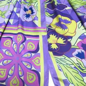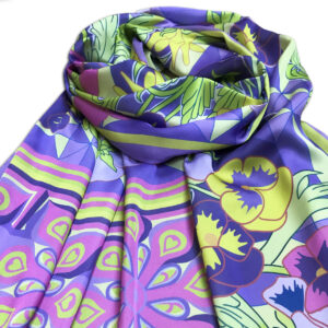 Materiał:  „sztuczny jedwab” 100% PES (ani jeden jedwabnik nie zginął przy produkcji tych szali), który w dotyku doskonale „udaje” naturalny jedwab.