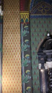 Szale powtarzają polichromie Stanisława Wyspiańskiego z Bazyliki sw.Franciszka w Krakowie.