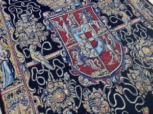 Kopia dywanu z Godłem Rzeczypospolitej i herbem Króla Zygmunta III Wazy.