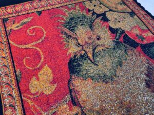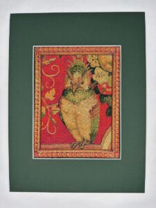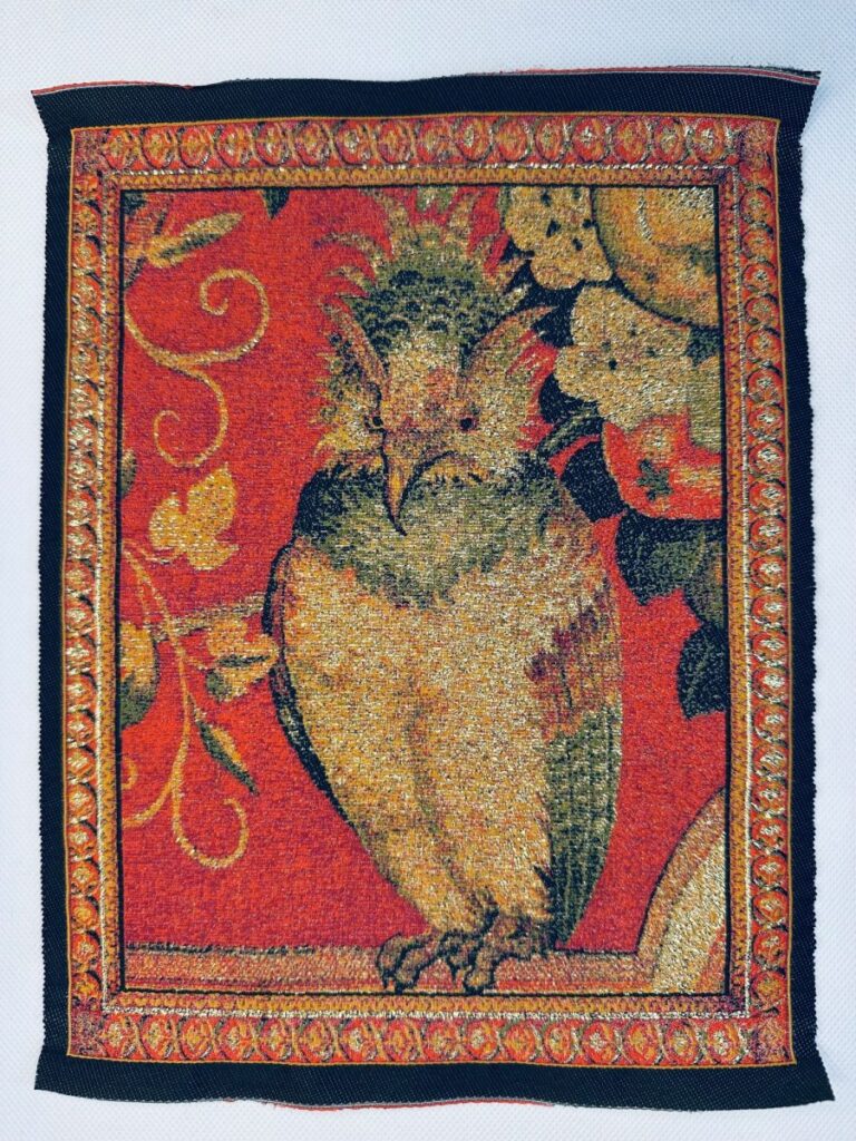 Tkana miniatura – Fragment herbowego Arrasu Wawelskiego z XVIw – Sowa